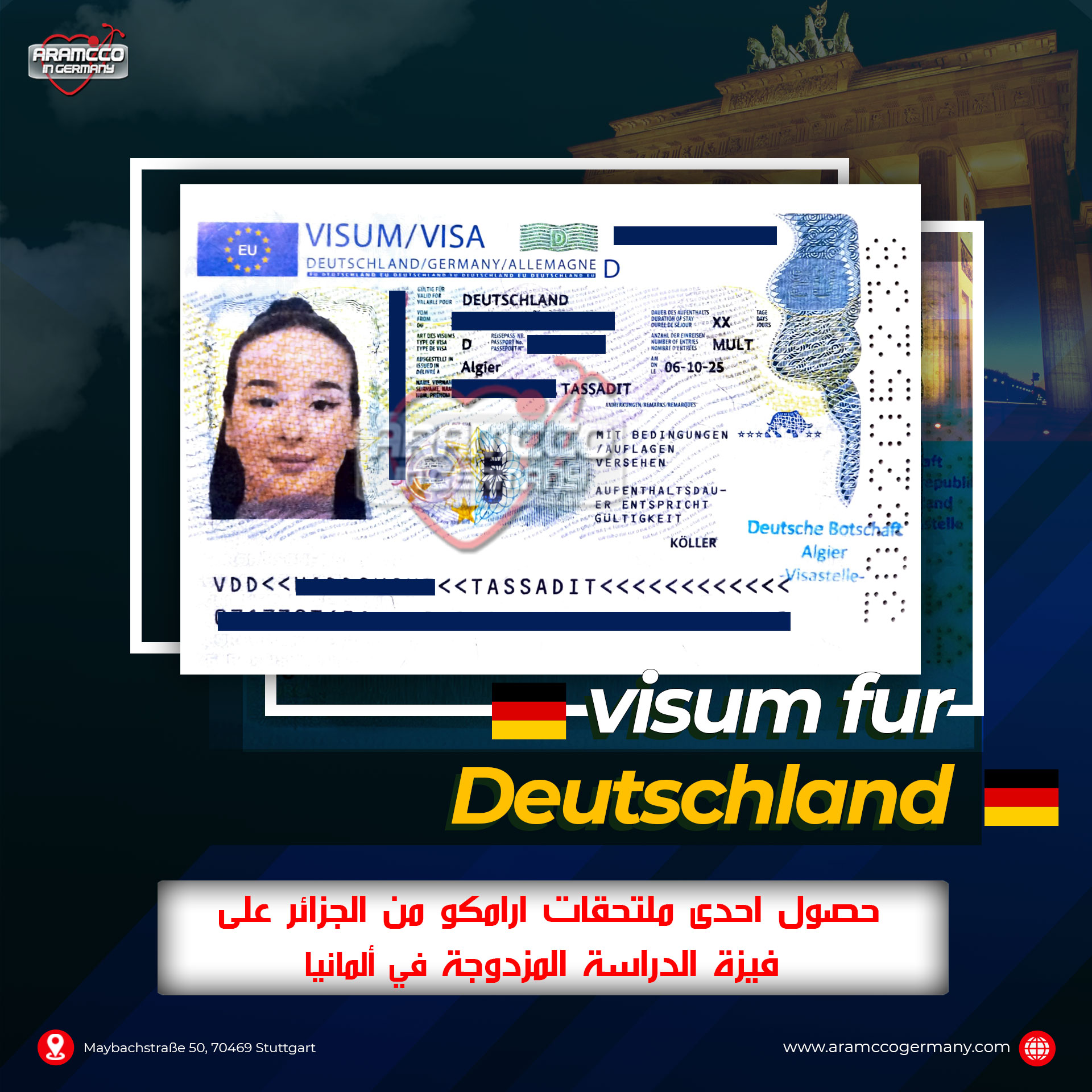 تهنئ شركة ارامكو في ألمانيا الملتحقة تساديت من الجزائر لحصولها على فيزا الدراسة المزدوجة في المانيا