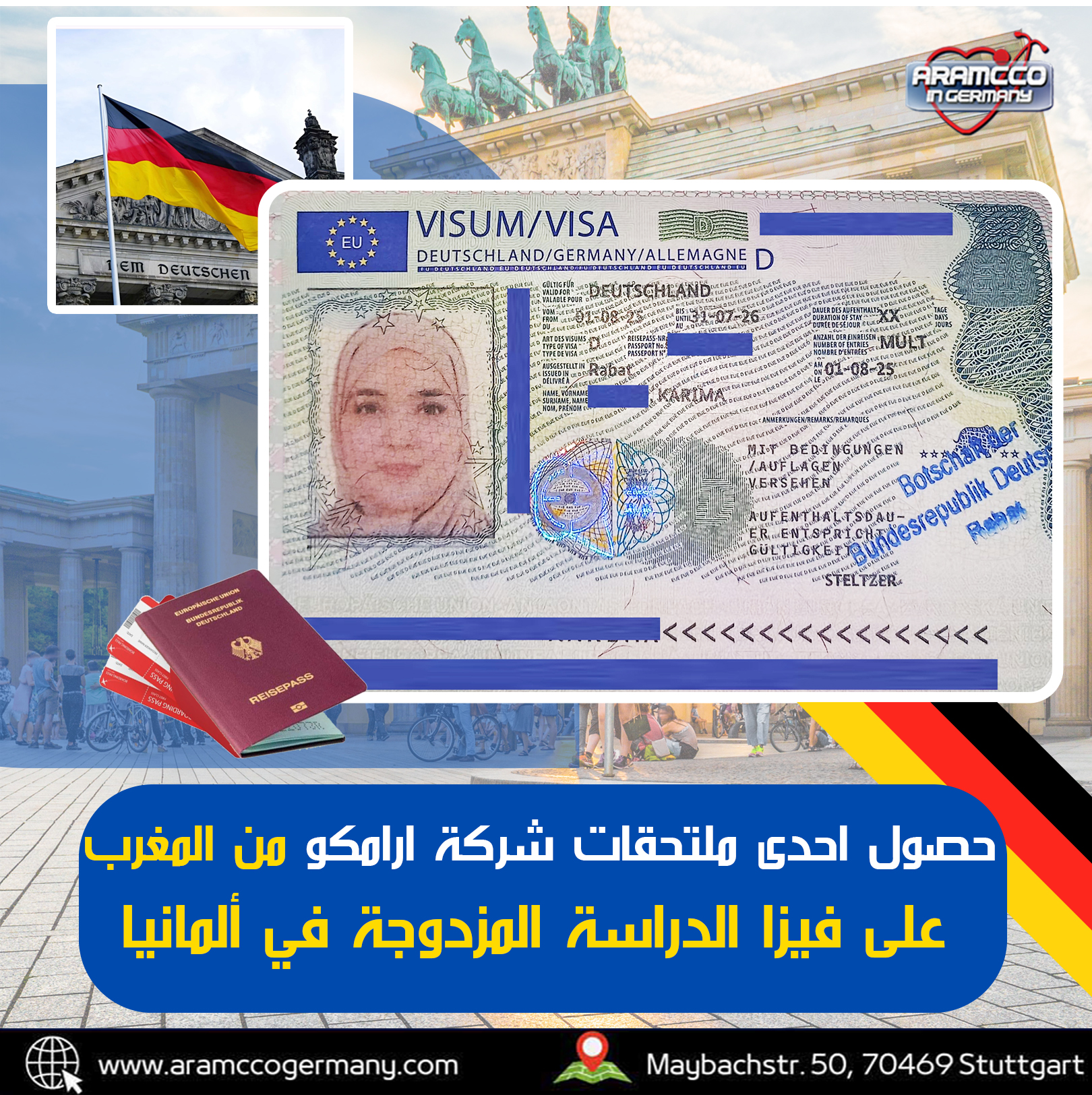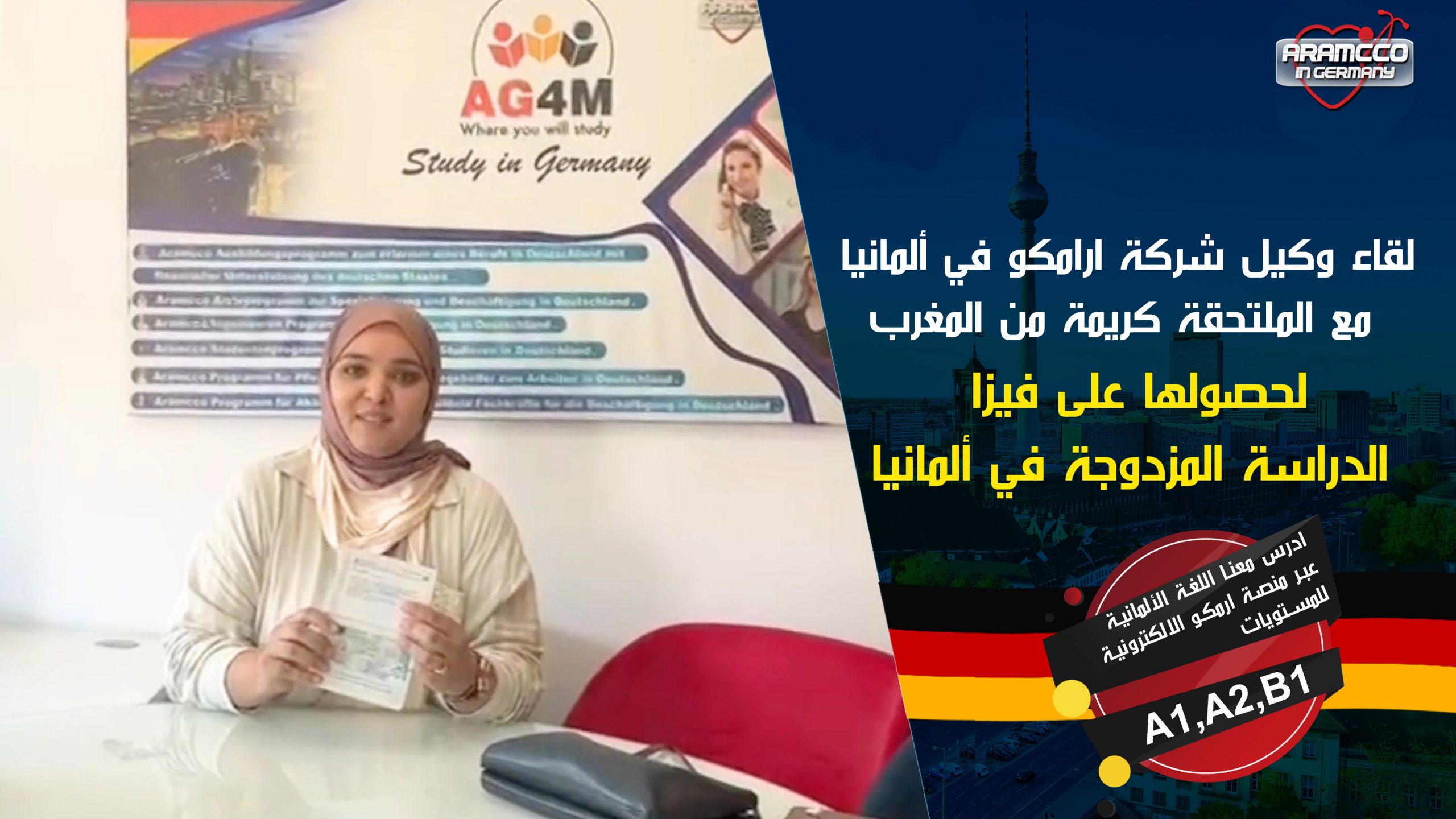 تهنئ شركة ارامكو في ألمانيا الملتحقة كريمة من المغرب لحصولها على فيزا الدراسة المزدوجة في ألمانياeyadsr2025-09-21T13:51:04+00:00